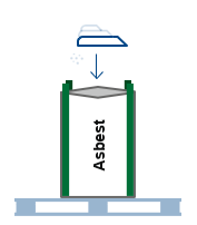 Posen fyldes bedst, hvis man ligger åbningen til den ene side og man derefter skubber pladerne sidelæns ind i posen. Asbestpladerne kan evt. placeres på en palle, som løftes, inden der trækkes en sæk ud over plader og palle. Sækken inkl. pallen skal også placeres på en palle.