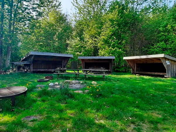 Turen starter med at gå bagom stadion, hvor du kommer til et nyt lækkert område med bål, hytte mm.