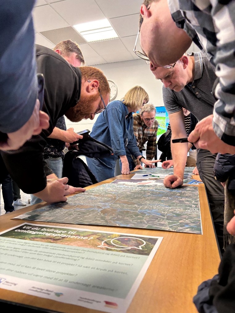Møderne var præget af god energi – særligt da lodsejerne fik mulighed for at snakke med en udtagningskonsulent, en kommunal projektmedarbejder og deres naboer omkring et kort.
