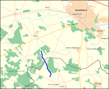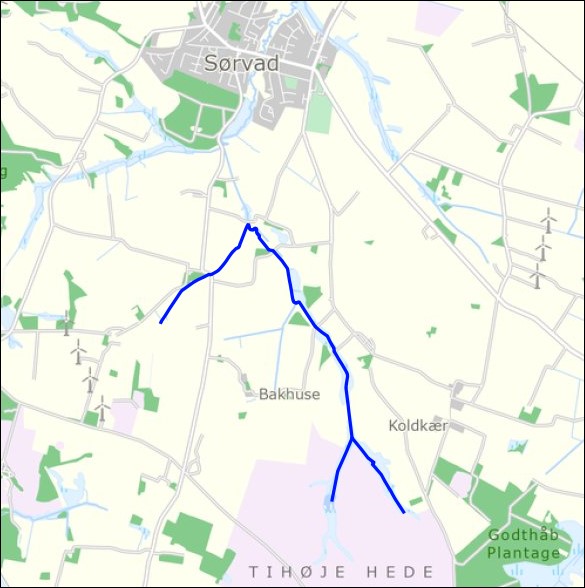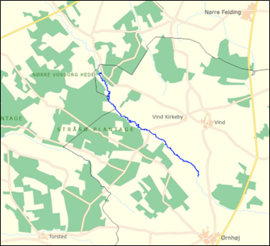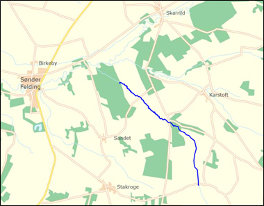 I Vognstrup Bæk syd for Sørvad har Herning Kommune i august 2019 gennemført et projekt på strækket opstrøms Løgagervej. Strækket er vist på kortet nedenfor.