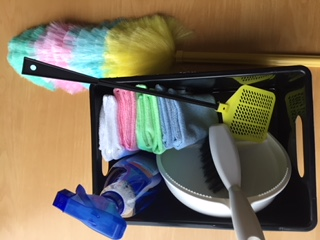 Huslige gøremål, f.eks. støvklud, kost, fejeblad, glasrens.