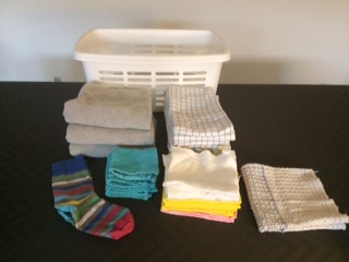 Lægge tøj sammen, f.eks. vasketøjskurv, klude og viskestykker, strømper