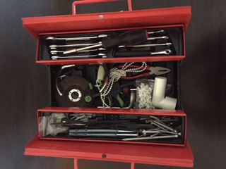 Handy man, f.eks. værktøjskasse med skruetrækker, bidtang, søm, skruer
