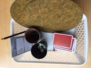 Spil, f.eks. kortspil, raflebægre og terninger