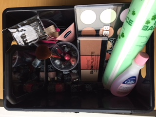Make-up, f.eks. vatrondeller, creme, læbestift, hårbørste, curlers, neglelak og fil, hårklemmer