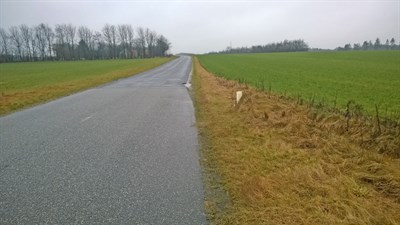 Hul i vejen set på afstand (skadestedet langt fra)
